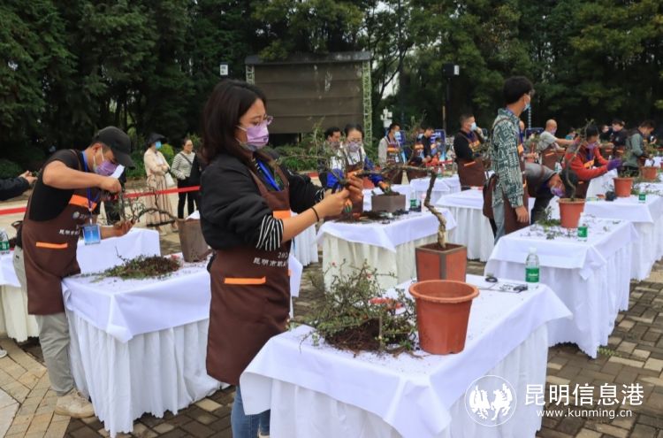 为了充分调动昆明市从事园林绿化行业职工学习技术、钻研业务、提高技艺、争当能手的积极性,营造争学技术、比拼技能的良好学习氛围,推动职业技能培训和弘扬工匠精神中的重要作用,2022年9月22日-23日由昆明市人力资源和社会保障局、昆明市总工会、昆明市城市管理局主办,昆明市职业技能鉴定中心、昆明市职业培训指导中心、昆明地区职工技能提升活动办公室、昆明市大观公园承办,云南省盆景赏石协会协办的2022年昆明市职业技能竞赛绿化工、插花员竞赛暨第六届昆明市名匠杯职业技能竞赛在大观公园举行。本次竞赛以“提升新技能,助力新跨越”为主题,举行了绿化工、插花员两个工种的赛事,涵盖盆景制作、植物病虫害防治、植物修剪整形、插花艺术个人赛及插花艺术团队赛五个项目。