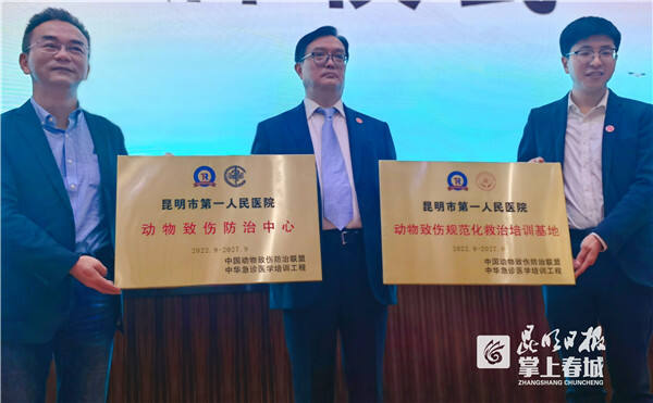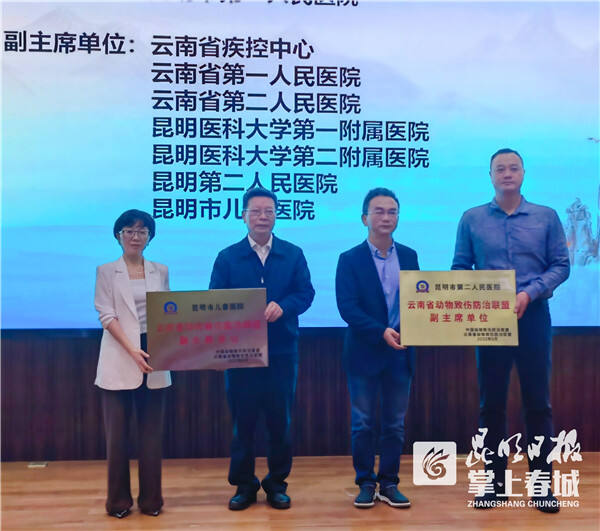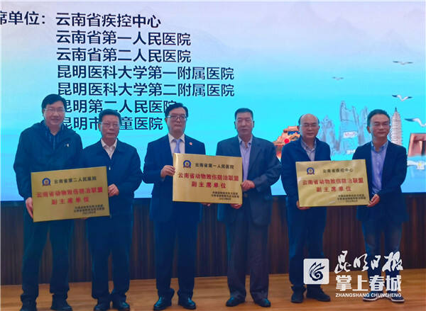 昆明市第一人民医院牵头成立云南省动物致伤防治联盟,是主席单位。副主席单位有云南省疾病预防控制中心、云南省第一人民医院、云南大学附属医院、昆明医科大学第一附属医院、昆明医科大学第二附属医院、昆明市儿童医院、昆明市第二人民医院。国家创伤救治中心、北京大学人民医院李明博士为云南省动物致伤防治联盟主席单位授牌。