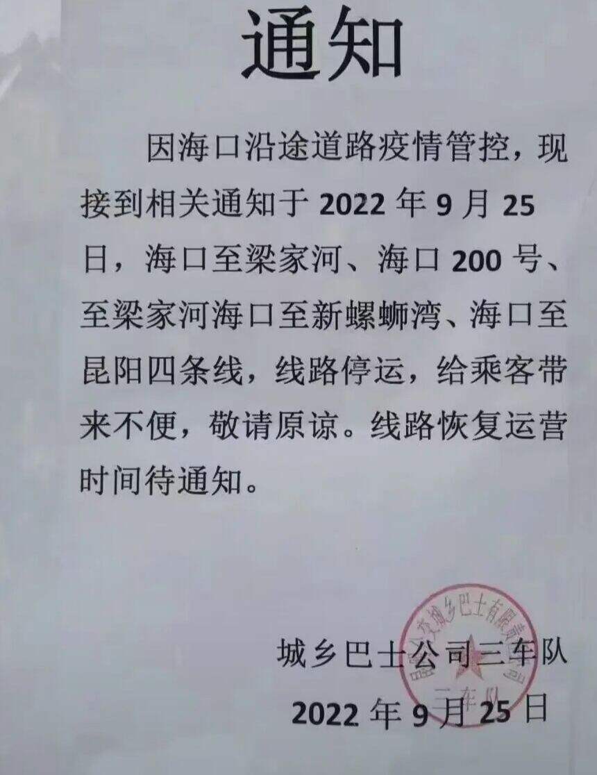 9月27日,记者从昆明公交城乡巴士有限责任公司获悉,西山区海口片区4条公交线已暂停营运。