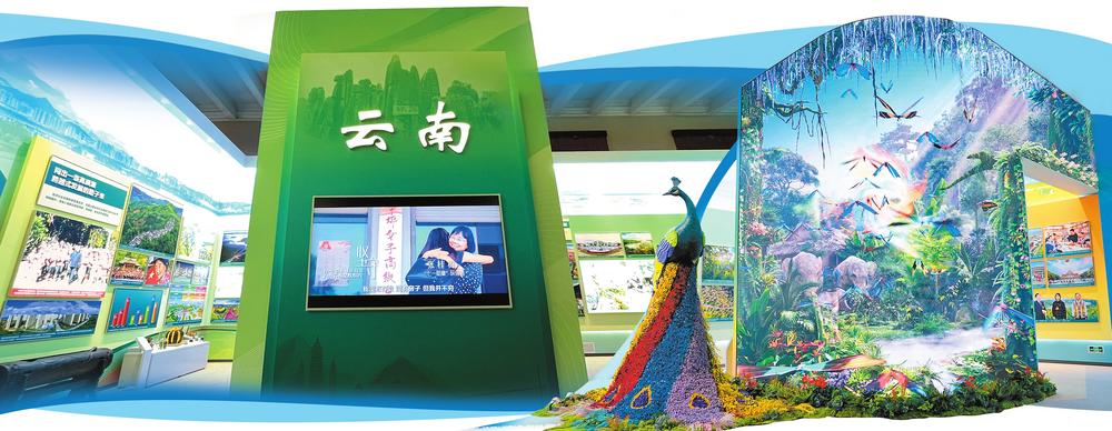 9月27日,“奋进新时代”主题成就展在北京开幕,彩云之南精彩亮相。云南单元集中展示了党的十八大以来,习近平总书记两次赴云南考察调研,多次给云南干部群众回信,作出一系列重要指示批示,要求云南各族干部群众努力在建设我国民族团结进步示范区、生态文明建设排头兵、面向南亚东南亚辐射中心上不断取得新进展,为云南发展擘画蓝图、指引方向。牢记总书记殷殷嘱托,云南各族儿女勇挑重担,苦干实干,扎实推进高质量跨越式发展,深入实施精准扶贫、精准脱贫,做好做实做细新时代党的民族工作,加强生态环境综合治理、系统治理、源头治理,深化对外开放取得巨大成就。