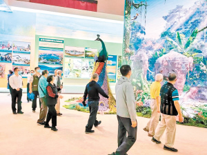 为更好展示七彩云南、提升观展效果,主题成就展云南展览办及策展团队精心策划,重点推出佤族木鼓、鲜花孔雀等实物、模型,裸眼3D视频大象迎宾、洱海之变等多媒体视频,AI换装、云岭翻译等互动展项,在有限的空间合理布置,有机搭配彰显特色。