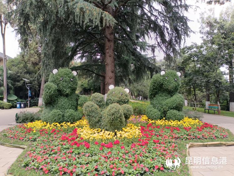 今年菊花观赏点分布于昆明动物园东门主游路沿线,园内精心布置了“一秋菊华·万象流霞”、“金秋乐章”、“花溪叠瀑”、“东篱菊韵”、“火舞献瑞”、“众志成城”6组菊花景观,并结合动物园的特色,用菊花绑扎成大熊猫、亚洲象、火烈鸟等造型,同时配置以彩色花带,使每一组动物造型的花卉景观看上去都栩栩如生。