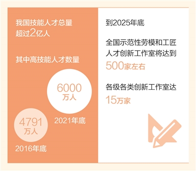技术工人队伍是支撑中国制造、中国创造的重要力量。日前,记者从全国总工会获悉:我国技能人才总量超过2亿人,其中高技能人才数量从2016年底的4791万人增长到2021年底的6000万人。