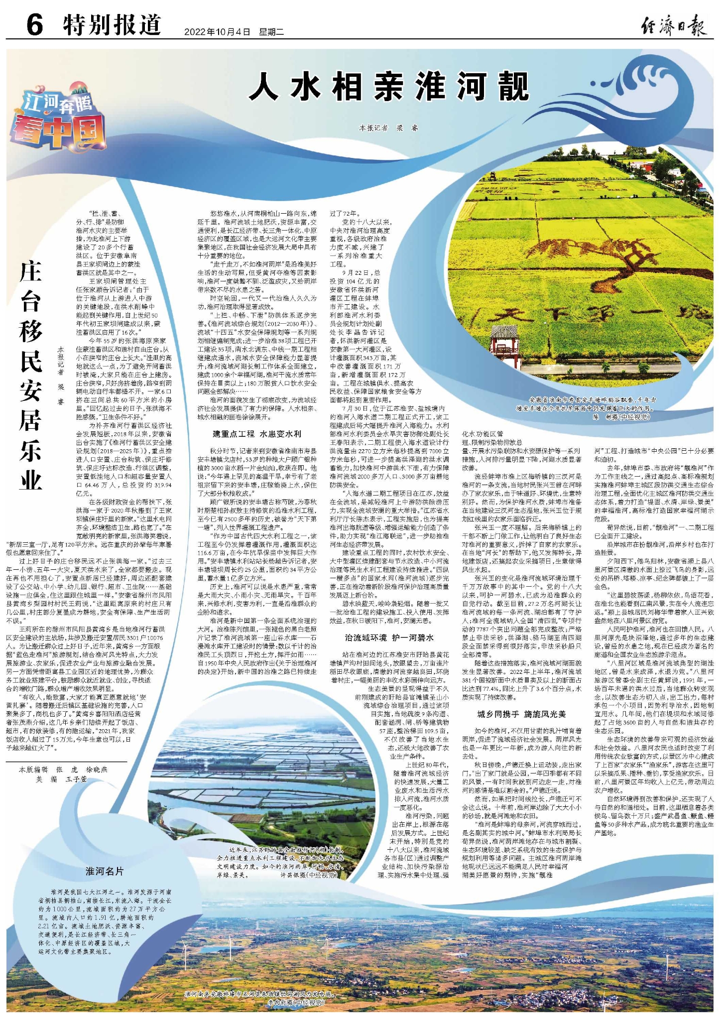 过上好日子的庄台移民远不止张洪海一家。“过去三年一小涝、五年一大灾,夏天洪水来了,全家都要搬走。现在再也不用担心了,安置点新居已经建好,周边还配套建设了公交站、中小学、幼儿园、银行、超市、卫生院……基础设施一应俱全,住这里跟住城里一样。”安徽省滁州市凤阳县黄湾乡梨园村村民王莉说,“这里距离原来的村庄只有几公里,村庄部分复垦成为耕地,安全有保障、生产生活两不误。”