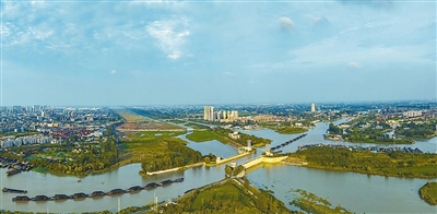 多年来,江苏省围绕疏通淮河入海水道,加快推进一系列治淮骨干工程建设,挖宽挖深河道、培高加固堤防、扩建控制枢纽,进一步提升行洪能力、保障沿线安全。图为淮河入海水道与大运河交汇处。贺敬华摄(人民视觉)