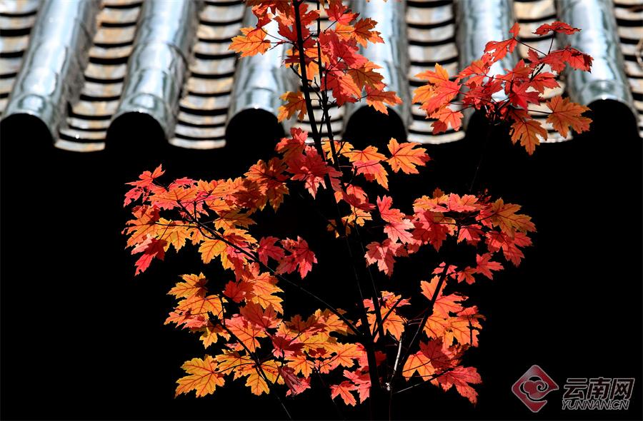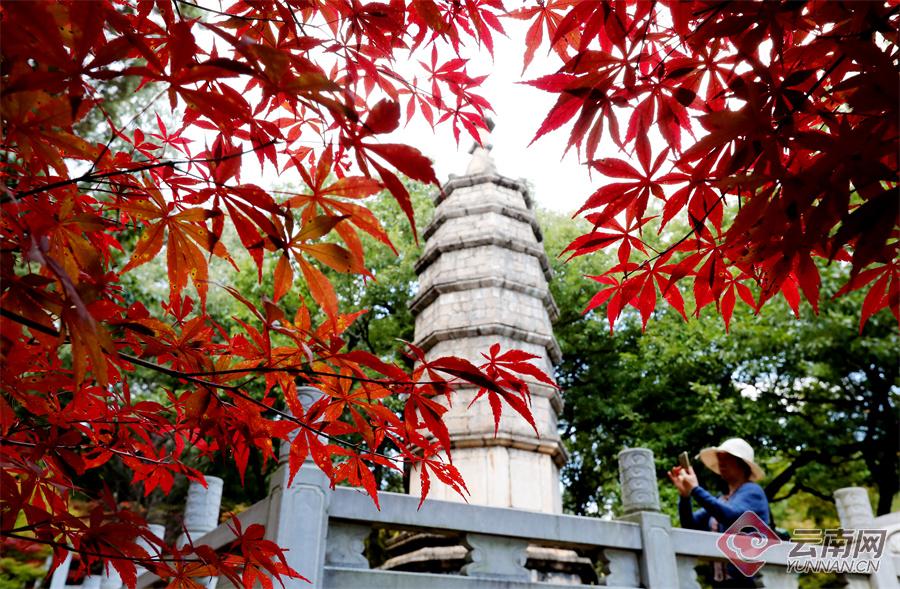黑龙潭公园秋日枫叶红得娇艳夺目。