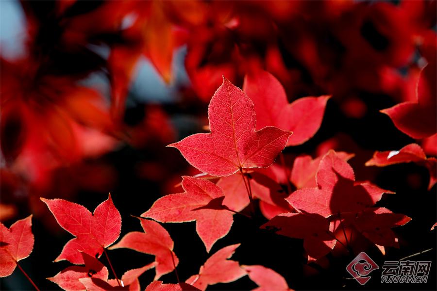 10月4日,国庆假日与重阳佳节“喜相逢”,昆明黑龙潭公园的红枫景观也进入了最佳观赏期,枫香、槭树、红枫等观叶植物在阳光照射下黄得鲜亮、红得艳丽,让整个山岭层林尽染,呈现色彩斑斓、娇艳夺目的秋日美景。