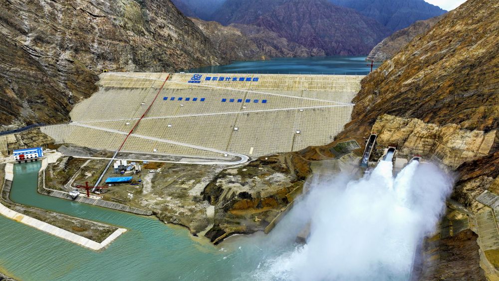 ↑这是2022年8月4日拍摄的阿尔塔什水利枢纽(无人机照片)。阿尔塔什水利枢纽工程位于新疆莎车县和阿克陶县交界处,地处喀喇昆仑山河谷,是叶尔羌河控制性水利枢纽工程。新华社发(阿布力克木·阿布拉 摄)