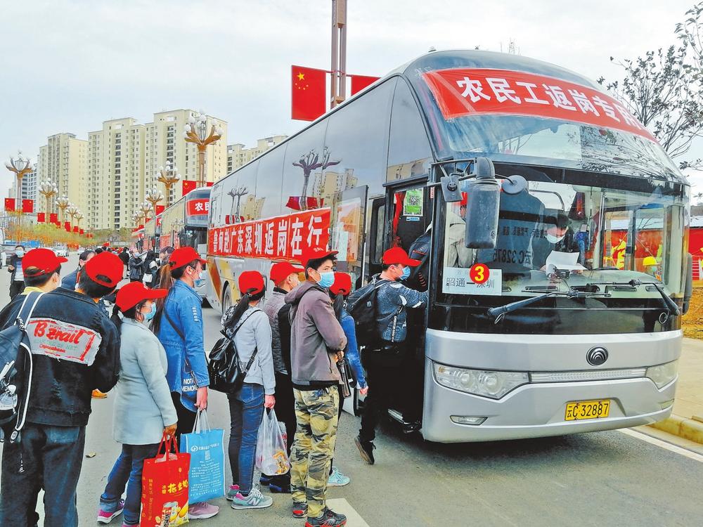 鲁甸县卯家湾易地扶贫搬迁安置区群众集中外出务工。记者 沈迅 摄
