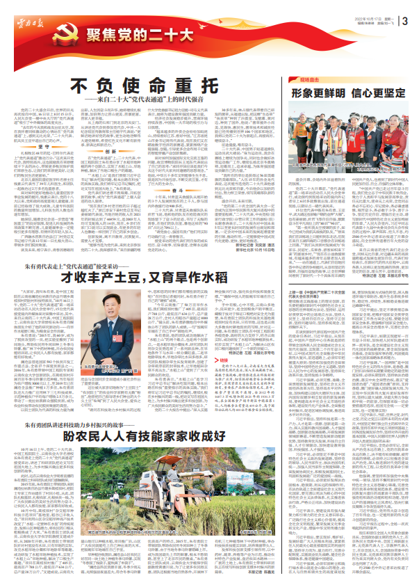 【聚焦党的二十大】朱有勇代表走上“党代表通道”接受采访——才收丰产土豆,又育旱作水稻