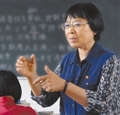 “七一勋章”获得者、云南丽江市华坪女子高级中学校长张桂梅在上课。华轩摄(人民视觉)