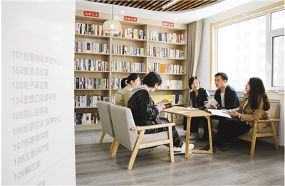 山东滨州市一处党群服务中心内,大学生们在交流学习心得。初宝瑞摄(影像中国)