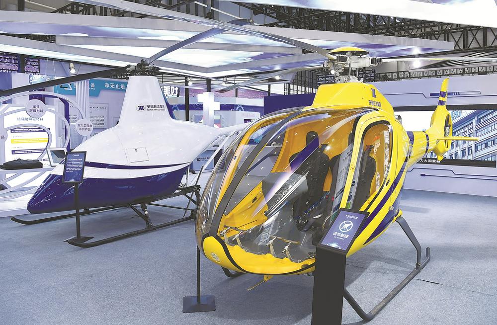 安徽应流集团在2022世界制造业大会上展示直升机产品。 记者 程兆 摄