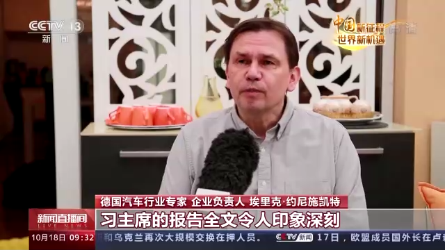 德国汽车行业专家 企业负责人 埃里克·约尼施凯特:习主席的报告全文令人印象深刻,尤其是其中提出的环保目标。眼下,所有国家都面临能源供应和碳排放问题,习近平主席提出了全国致力于减少二氧化碳排放的宏大目标。现在各国都致力于发展电动汽车,在我看来,对中国来说是巨大机遇,不仅在国内,同时也在海外引领电动交通的未来。