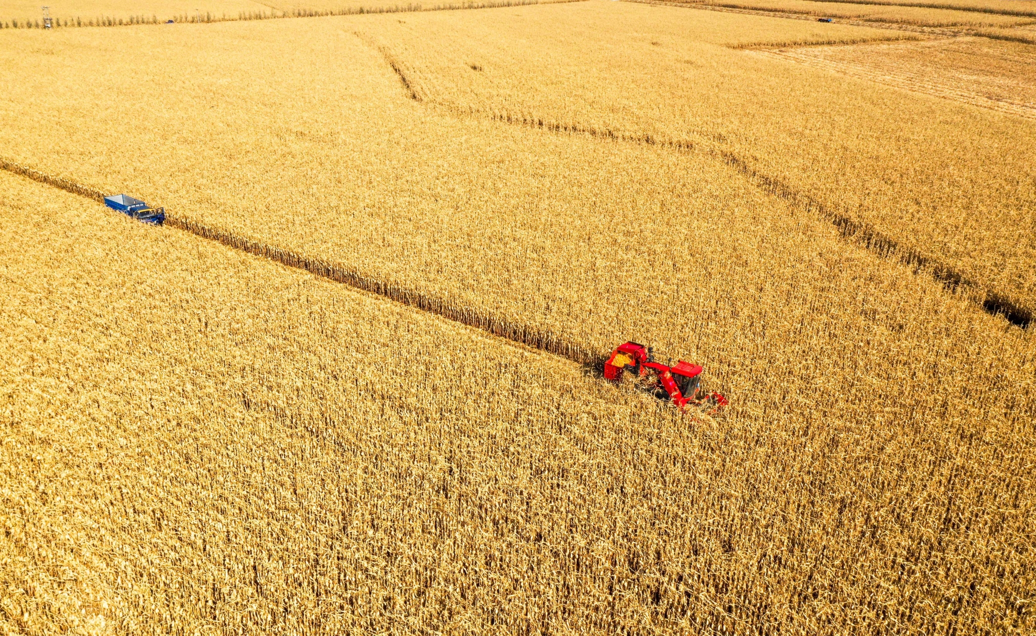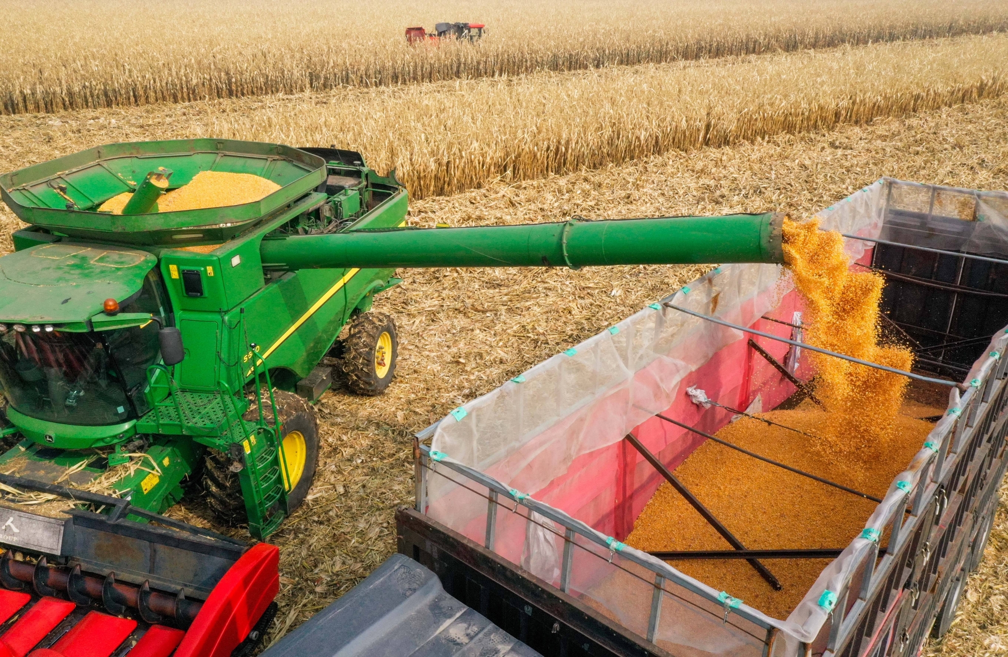 目前,通辽市的千万亩玉米陆续开镰,田间一片丰收景象。内蒙古通辽市地处“玉米黄金种植带”,今年玉米种植面积达1700多万亩。得益于浅埋滴灌、高密度栽培、全程机械化等生产技术,通辽市玉米亩产稳中有升。