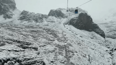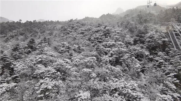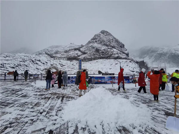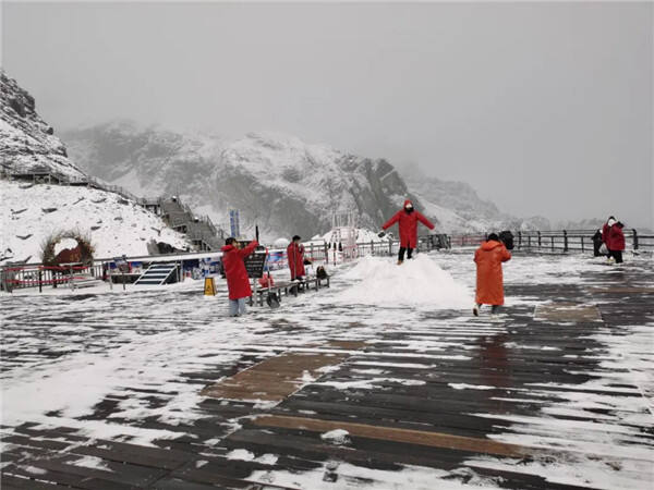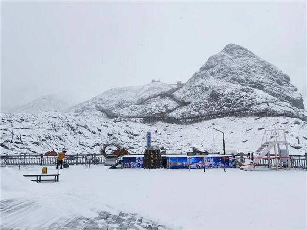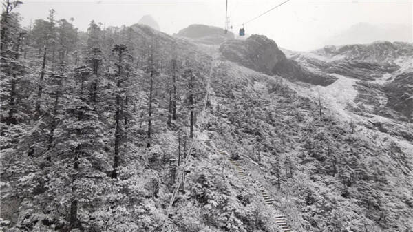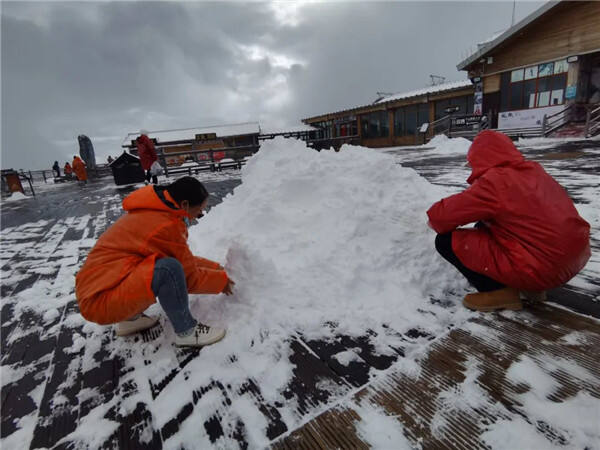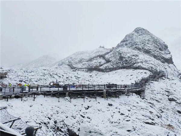 漫步雪山的木质栈道,周身已被白色包围,树枝上的白雪被风吹落,“欻欻”的声响也格外好听。一场秋雪后,森林仿佛格外空灵,鸟儿的鸣叫声一直传了好远。