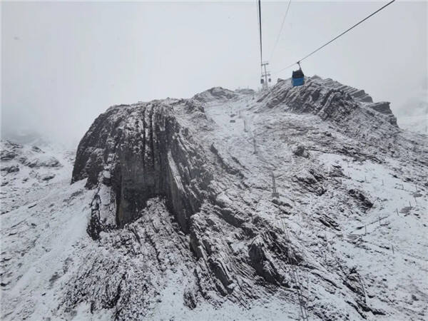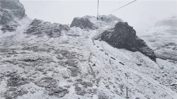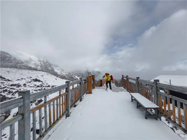 云南丽江玉龙雪山在一夜之间悄悄“白了头”