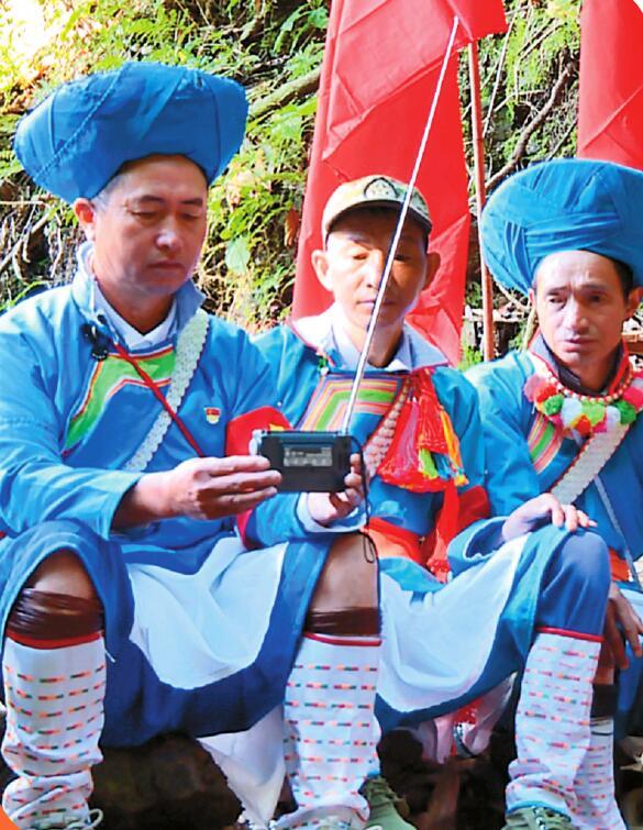 10月16日上午,腾冲市猴桥镇长塘村傈僳族党员蔡敬财和往常一样,早早就与驻守在边境一线的强边固防队员出发,开始一天的巡边工作。今天不同的是,他们带上了一台小型收音机。