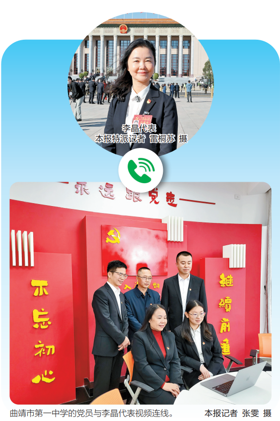10月18日17时40分,曲靖市第一中学的党支部会议室里,该校第二党支部的5名党员接到了党的二十大代表,曲靖市第一中学党委书记、校长李晶的视频电话。