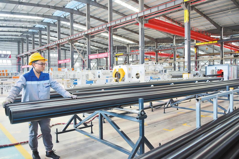 云南联塑科技发展有限公司员工在检查管材质量 记者李昌友/摄