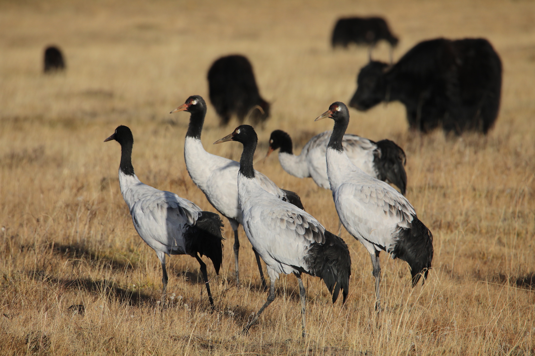 牦牛与黑颈鹤和谐共处。尕让泽登/摄