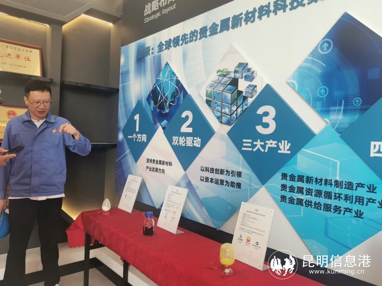 在云南省贵金属新材料产业园一期项目,贵研化学材料(云南)有限公司生产线上,技术人员分工明确、干劲十足,全身心投入生产研发中。据介绍,贵研化学材料(云南)有限公司主营贵金属(含金银)及其化工产品与日常生活息息相关,产品广泛应用于汽车尾气净化催化剂、石油化工等行业。目前,公司已承担了国家、省、市级等重点科研项目十余项,完成贵金属化学品领域一系列重点科研成果,为我国贵金属化学品及催化剂实现进口替代,解决“卡脖子”问题做出了贡献。