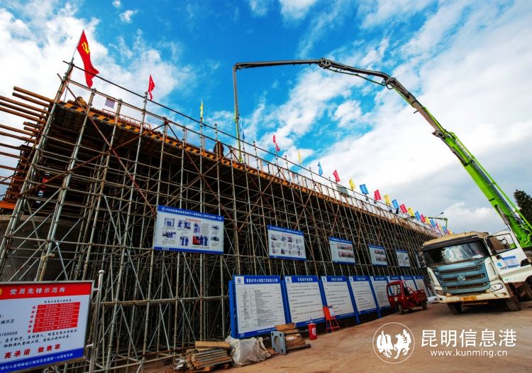 “施工过程中,为确保进度和质量,参建各方进行多次施工方案比选研讨,严格施工方案审查,加强与地方政府的沟通协调,完善下穿公路的交通疏导,强化临近高铁的安全防护。”中铁四局渝昆高铁昆明枢纽总工程师邓志标说,现场成立了党团员突击队,形成昼夜两班倒轮换作业。由于施工的特殊性,浇筑工作需不间断持续进行,这次连续梁浇筑用时一天一夜,各方紧密配合,确保了连续梁浇筑的顺利完成,既保证了施工进度的有序推进,又保障了公路和高铁的正常运行。
