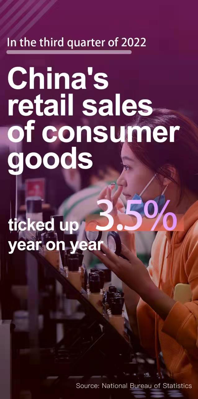 With economic activities generally perking up, China's consumer market has warmed up in the third quarter. The country's total retail sales of consumer goods ticked up 3.5 percent year on year in the third quarter, reversing the 4.6-percent decline logged in the second quarter.