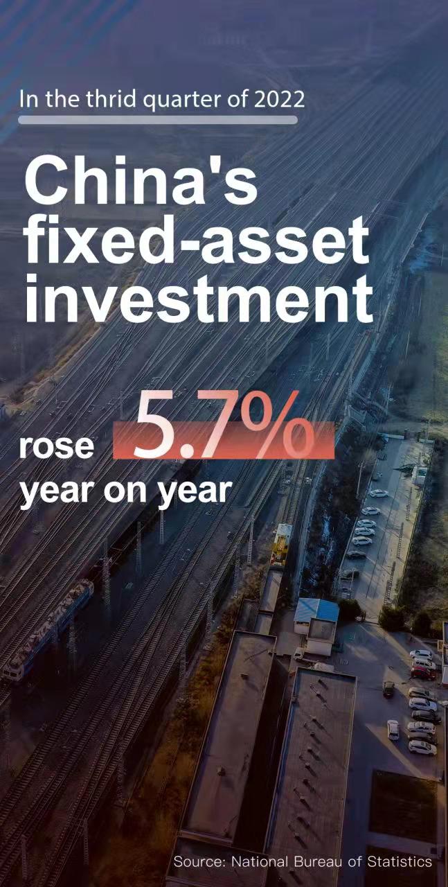 Fixed-asset investment sustained growth momentum in the third quarter, rising 5.7 percent from the same period a year earlier, up 1.5 percentage points from the second quarter.