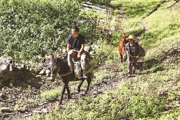 9月21日一大早,字忠礼和儿子行走在山间小路上,前往自家的核桃园准备进行传竿仪式和打核桃。