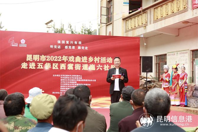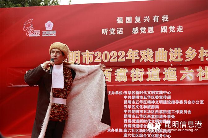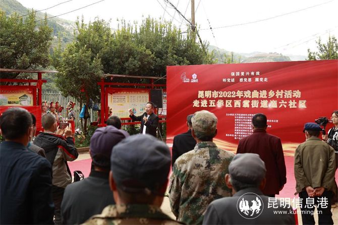 10月25日下午,昆明市2022年戏曲进乡村活动走进五华区西翥街道迤六社区。活动以“强国复兴有我——听党话、感党恩、跟党走”为主题,旨在满足人民群众精神文化需求,助力乡村文化振兴,提升群众文化生活满意度。