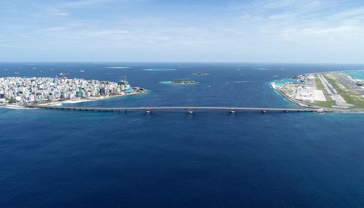 这是在马尔代夫航拍的连接首都马累和机场岛的中马友谊大桥(2019年8月30日摄)。新华社发(王明亮 摄)