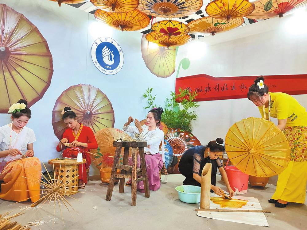 “德宏职业学院建设葫芦丝文化展室、加工制作室和‘绘勐傣’傣族剪纸工作室,开展葫芦丝加工制作、傣族剪纸、油纸伞、彩陶制作等非遗文化的技艺传承与创新,获多项全国性奖项。”德宏职业学院党委宣传部部长陈敏介绍,学校在全省率先成立铸牢中华民族共同体意识研究中心,与云南民族大学签订铸牢中华民族共同体意识研究战略合作协议,与云南艺术学院、楚雄师范学院、大理大学等建立研究合作关系,整合专家教授资源,组建科研团队,开展铸牢中华民族共同体意识研究工作,建立民族团结进步共建机制。