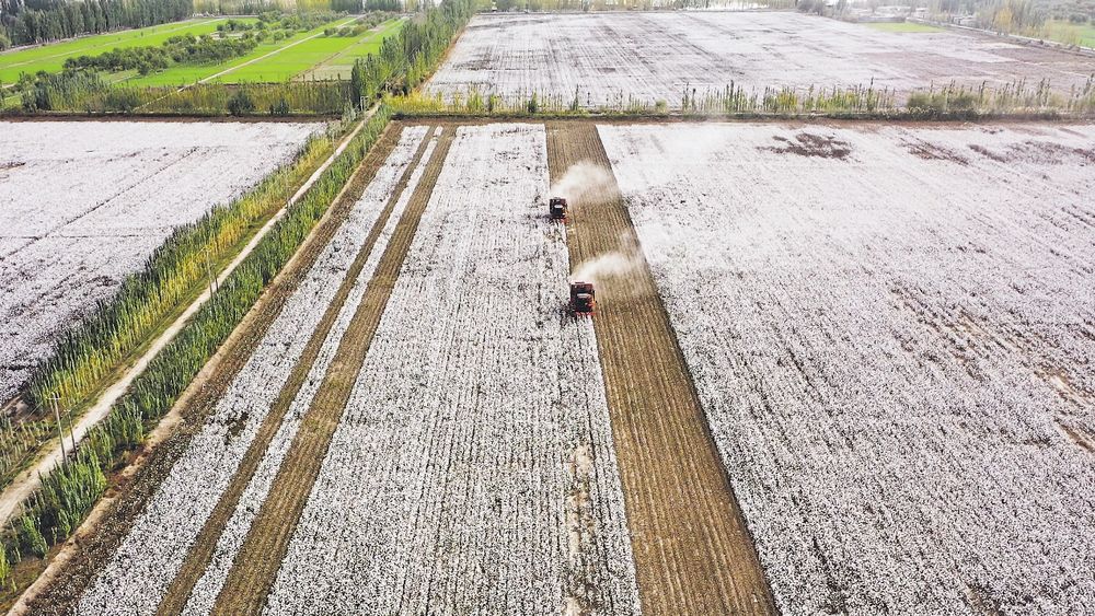 巴楚县大型机械在采收棉花。巴楚县融媒体中心 供图