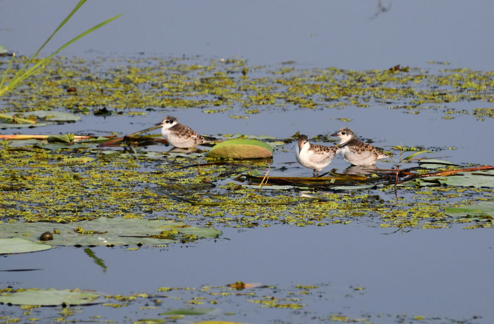野生鸟类在生态环境优美的微山湖栖息(2022年7月21日摄)。新华社记者 徐速绘 摄