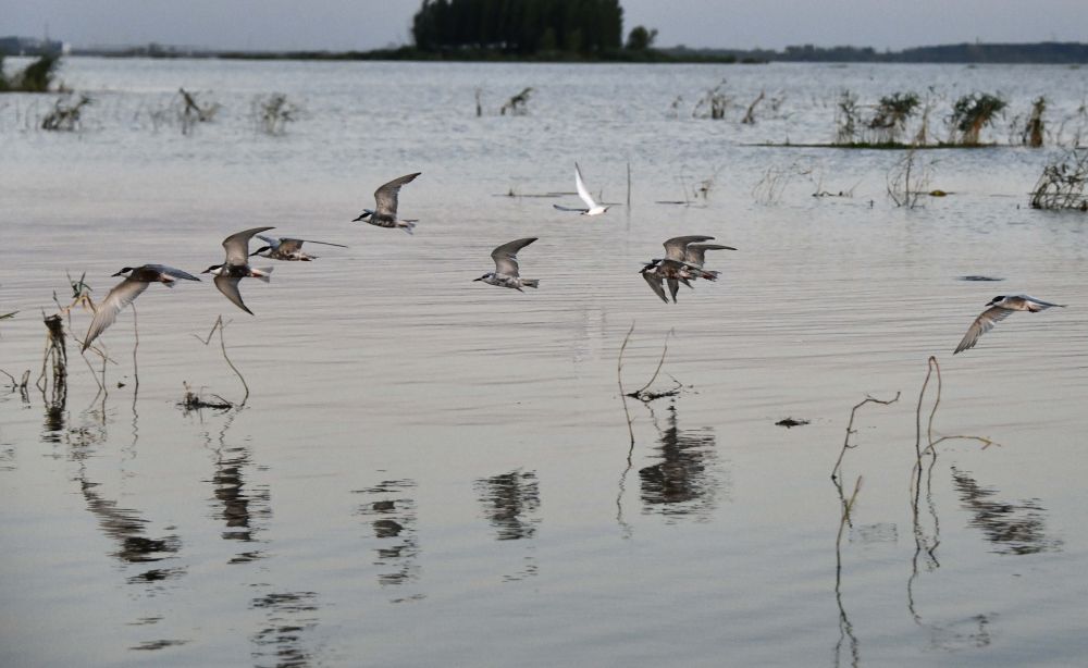 傍晚,一进入微山湖新薛河湿地,各种鸟叫声不绝于耳。一群白鹭在水中觅食,几只鸟从头顶飞过。“以前微山湖生态不好,鸟很少,只好去外地拍。现在光我在这拍到的鸟就有100多种。一些近乎绝迹的鸟,现在陆续又飞回来了。”摄影爱好者赵迈说。