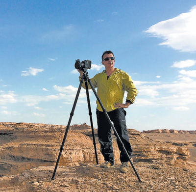 蒂埃里在甘肃敦煌拍摄风景。