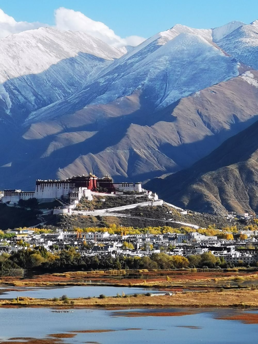 ↑这是从拉萨河南岸方向拍摄的布达拉宫(10月29日摄)。
