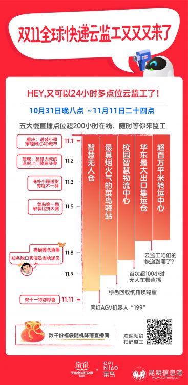 记者了解到,此次直播中,菜鸟的物流科技“萌宠”齐上阵。其中,在此前1亿人次观看的双11云监工中走红的网红机器人“199”也将再来一次长情陪伴。