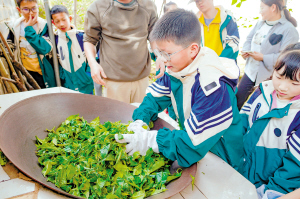 “小茶农”学习用传统方法制茶。 昆明市网络文化协会供图
