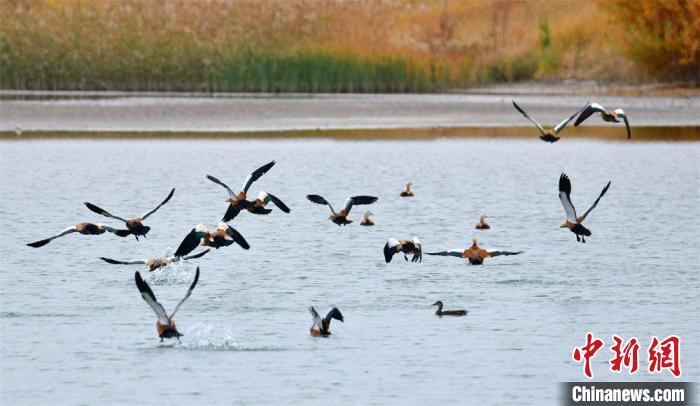 图为10月底,甘肃敦煌党河湿地成群野生鸟类翩翩飞舞。 王斌银 摄