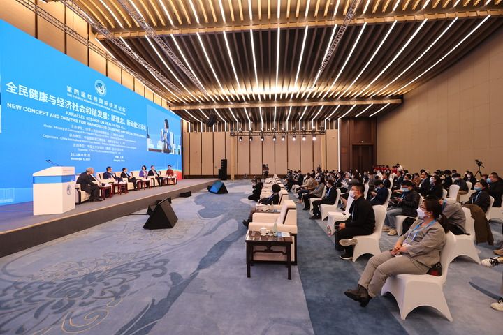 第四届虹桥国际经济论坛“全民健康与经济社会和谐发展:新理念、新动能”分论坛在上海举行(2021年11月5日摄)。新华社记者 王翔 摄