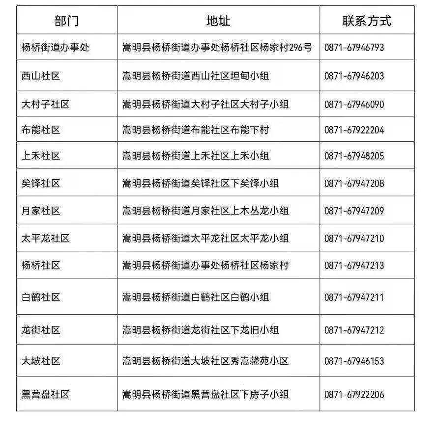 附:嵩明县杨桥街道各社区咨询报备地址、电话