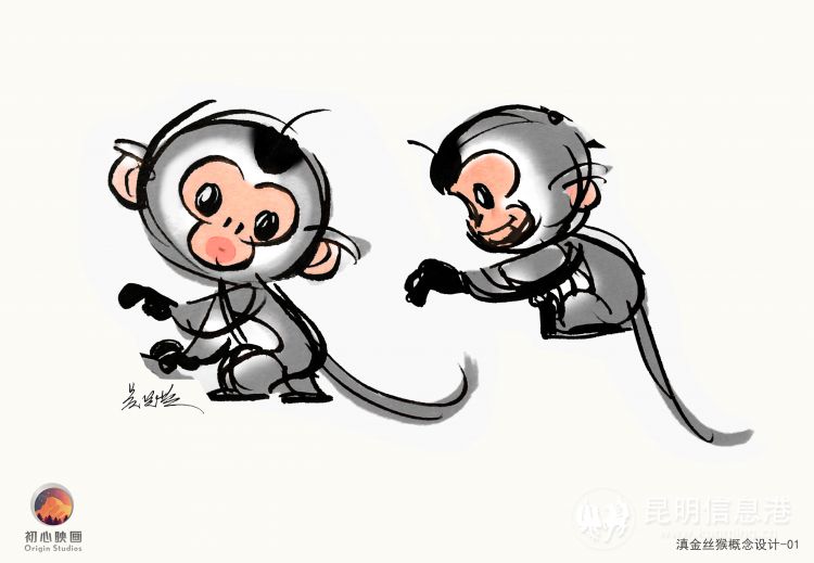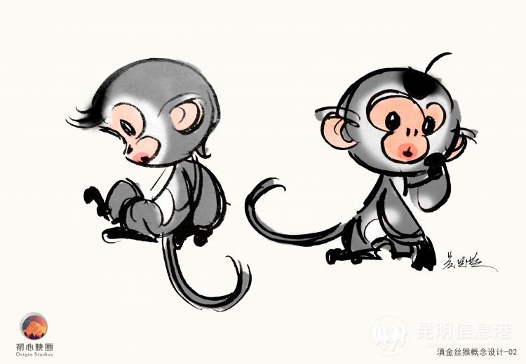 在“塔塔”的形象构造上,两位艺术家匠心独运,设计团队和园区通力合作紧密配合。不同于传统意义上的猴子形象,滇金丝猴外形最大的特点除了它饱满的嘴唇外,就是鼻子和头发了,所以最终的设计归纳就牢牢抓住了这一鲜明特点。虽然国内不乏以小猴子为原型的IP,但典型却不多,塔塔从形象上来讲,真正做到了差异化。