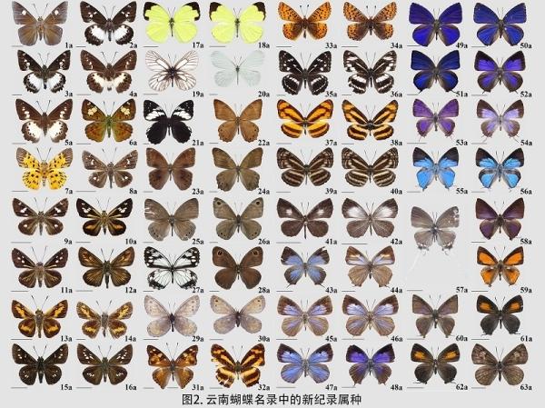 科研团队通过对云南境内不同生境类型进行连续多年的野外调查和标本收集、对昆明动物所昆明动物博物馆馆藏蝴蝶标本的检视以及相关文献调研工作,完成了一个较为全面可靠的云南蝴蝶名录,共收录6科356属1300种云南蝴蝶。同时,该研究报道了2个中国蝴蝶新纪录属、18个中国新纪录种及36个云南新纪录种。