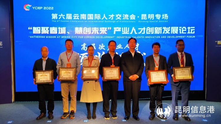 昆明市委组织部副部长、市人社局党组书记、局长杨正山,为《2022年度昆明市高层次紧缺急需人才引进指导目录》及服务平台作宣传推广,同时介绍了昆明市计划出台的产业发展人才政策情况。杨正山还为5家跨境人才交流培养基地和服务平台授牌。