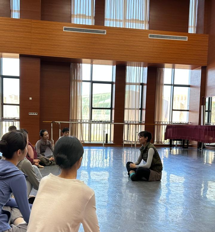 从北京回团后,排练紧张。在精心准备的党的二十大精神集中宣讲时间之外,于川雅也常常会像今天这样,趁着排练间隙,和同事们唠唠大会上的新精神新部署。大伙儿一边压腿一边讨论,越唠越精神。
