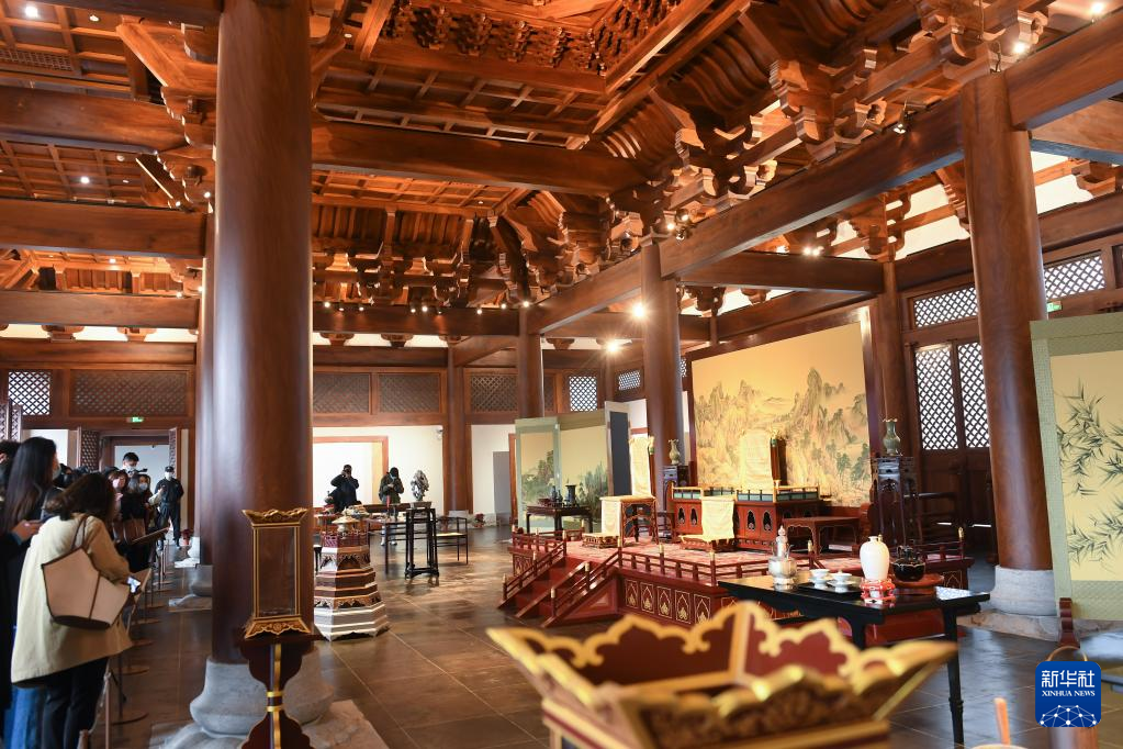 媒体记者在南宋德寿宫遗址博物馆重华殿内参观(11月14日摄)。新华社记者翁忻旸/摄