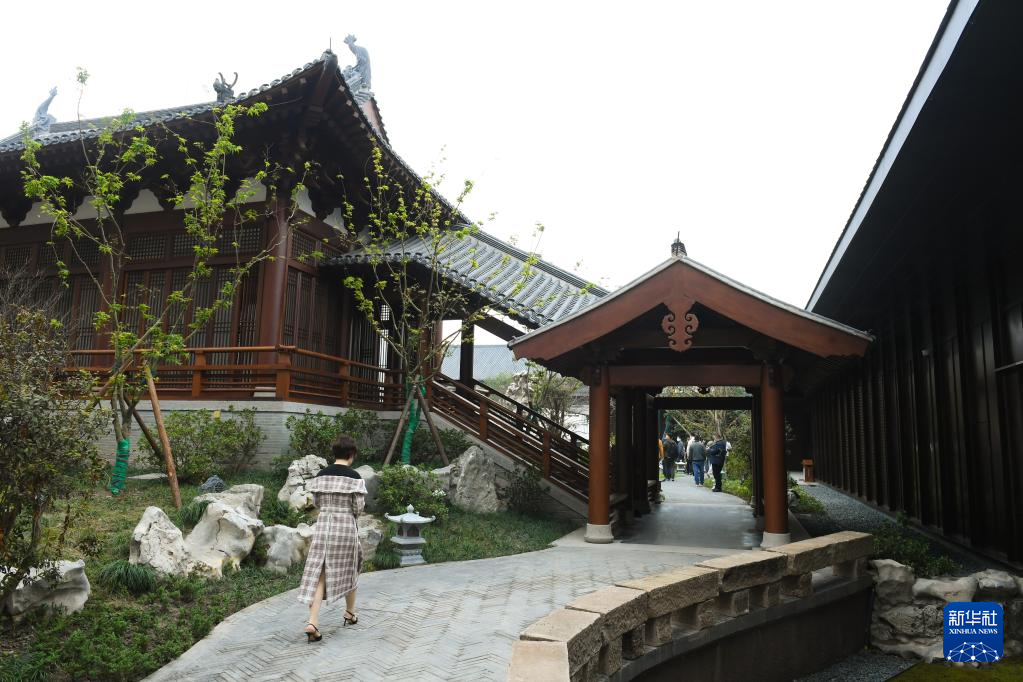 11月14日,一名女子行走在南宋德寿宫遗址博物馆的园林建筑之中。新华社记者翁忻旸/摄