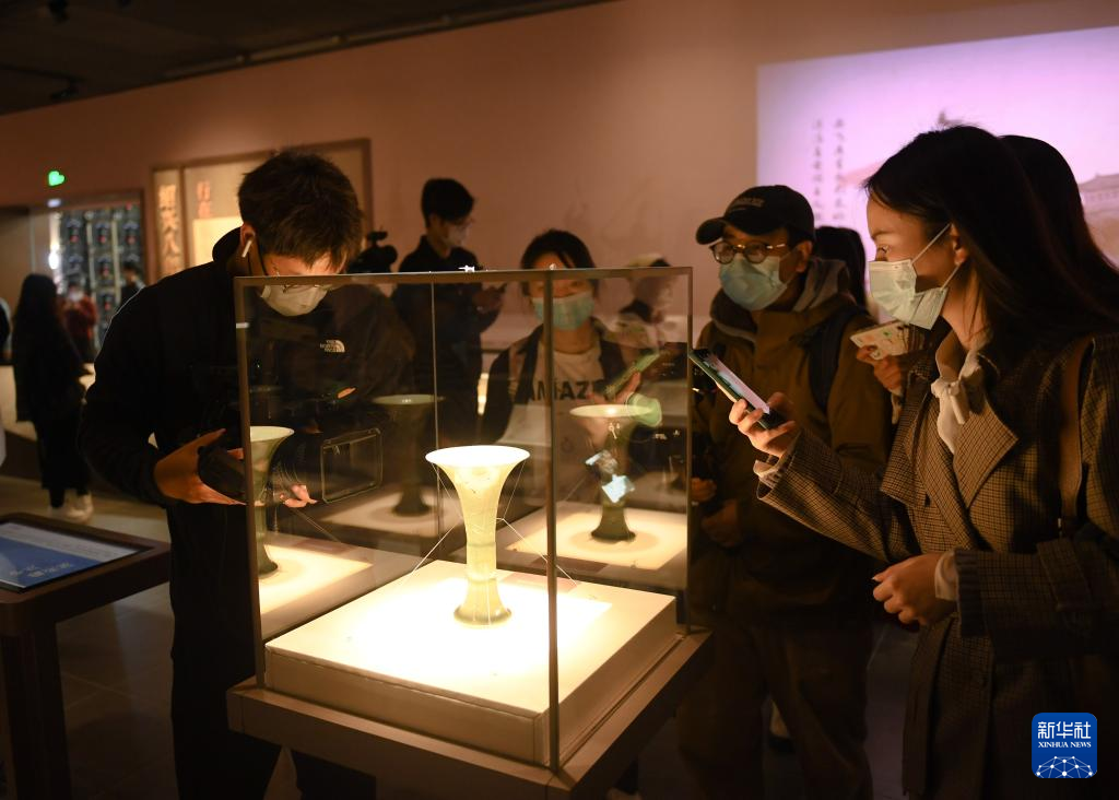 11月14日,媒体记者在观看南宋德寿宫遗址博物馆内展陈的南宋器物。新华社记者翁忻旸/摄